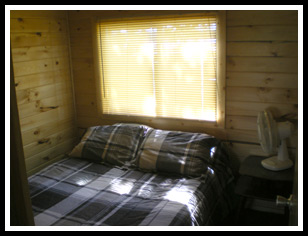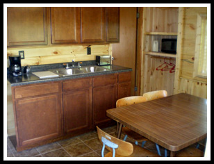 This cozy 1 bedroom cabin has lots of knotty pine that gives it a very homey cottage feel. Enjoy a romantic evening together with a nearly panoramic view of a Sybil Lake sunset. A large 16×18 open living room, with cable television, air conditioner, and furnace adding to its comfort. Newly remodeled kitchen and living area with tile throughout. This is the perfect place to spend a quiet time together